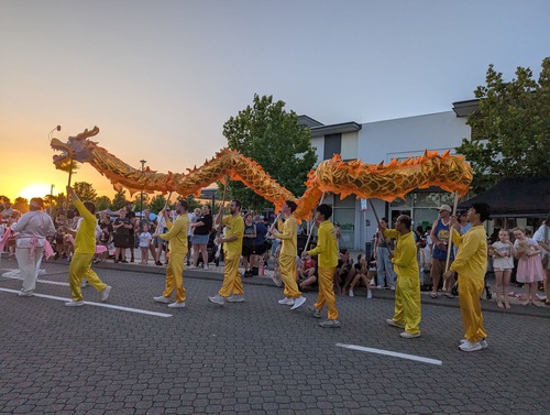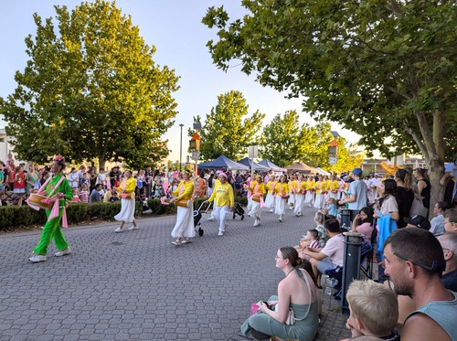 Many people praised the practitioners’ entry during the Bunbury City Christmas Parade, which was held on the evening of December 14. Their group included celestial fairies, a waist drum team, a flag team, and a Chinese dragon dance. The dazzling colors, along with the inspiring drum beats with the lively golden Chinese dragon, created a festive and auspicious atmosphere. The Chinese dragon and fairies interacted with the spectators who cheered and applauded them.