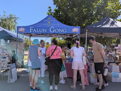 Practitioners had a booth at a Christmas festival in Ellenbrook in Western Australia on December 13, 2025. They told people about Falun Dafa and the ongoing persecution in China.