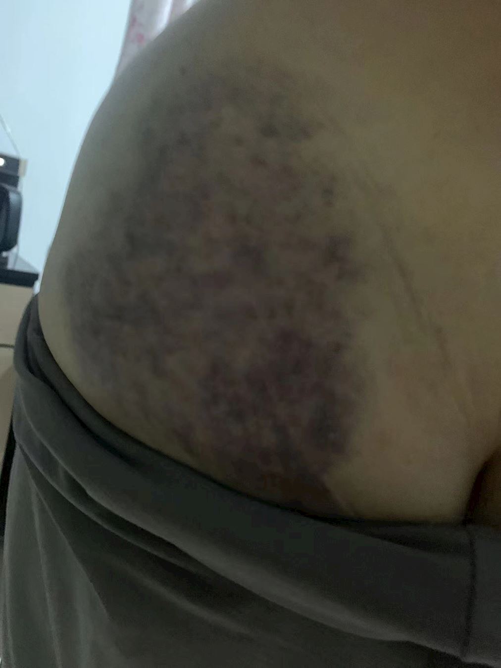 Ms. Zhang's arms were bruised due to the police violence during her arrest.