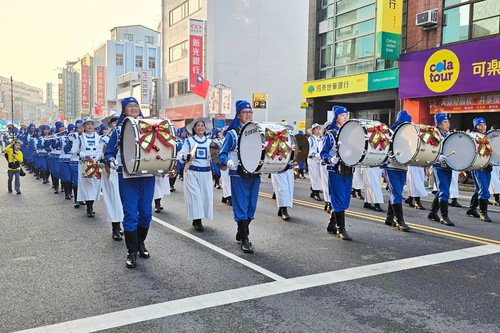 (Minghui.org) The Tian Guo Marching Band made another memorable appearance at the 33rd Chiayi City International Band Festival on Saturday, December 20, 2025. The band has participated in the event for more than a decade. This year, the Tian Guo Marching Band was made up of more than 200 Falun Dafa practitioners from all parts of Taiwan, and they were once again a highlight of the festival.