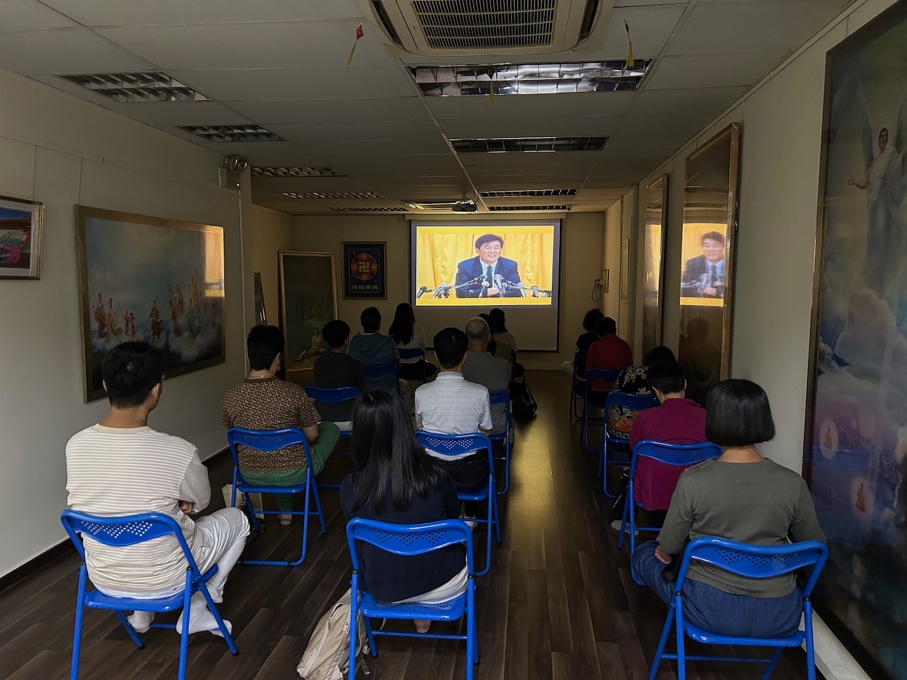 Participants watch videos of Master Li’s lectures during the nine-day Falun Dafa class held December 6 to 14, 2025.
