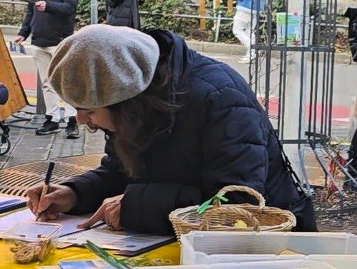 A woman lingered in front of the booth and said she wished learn more about the persecution. She said she'd heard about the persecution but wished to know why practitioners were persecuted. A practitioner told her about the CCP’s nature and its history of killing. The woman then asked about Shen Yun and was told the artists’ mission is to revive traditional Chinese culture. The woman said she would go to Berlin and watch the show.