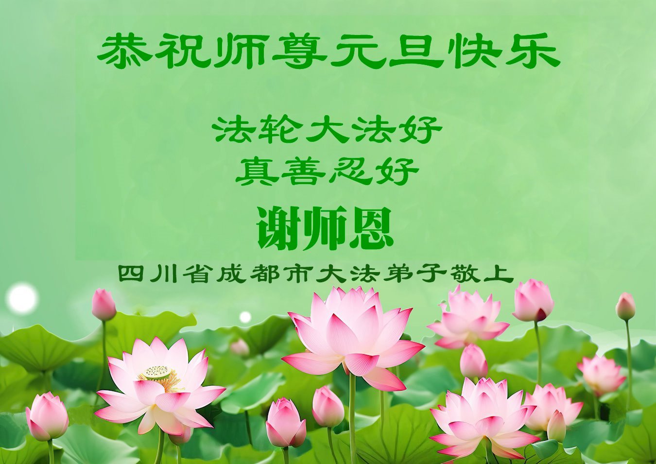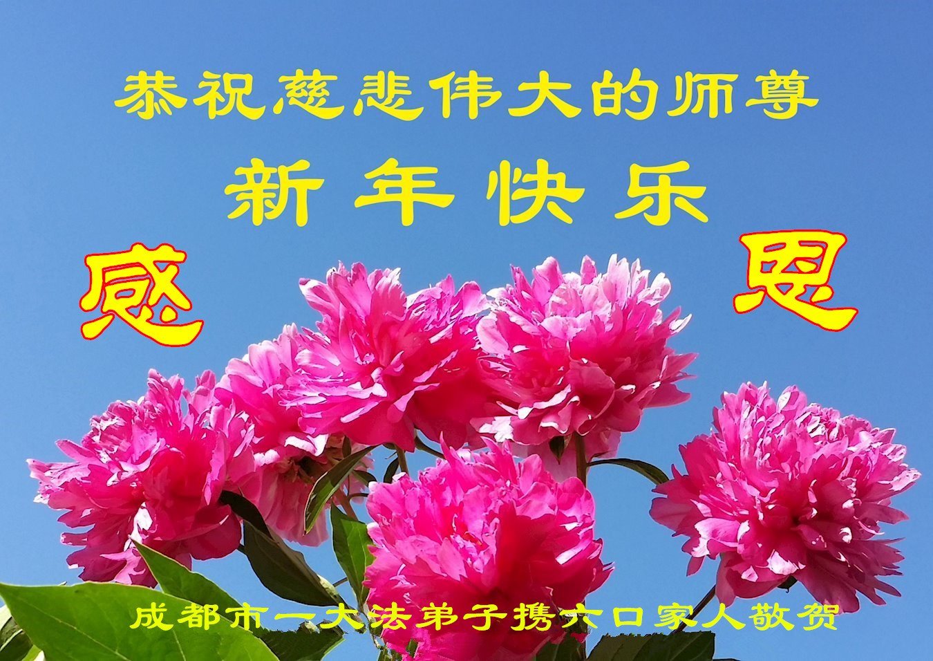 Falun Dafa Practitioners from Chengdu City Respectfully Wish Master Li Hongzhi a Happy New Year (102 Greetings)