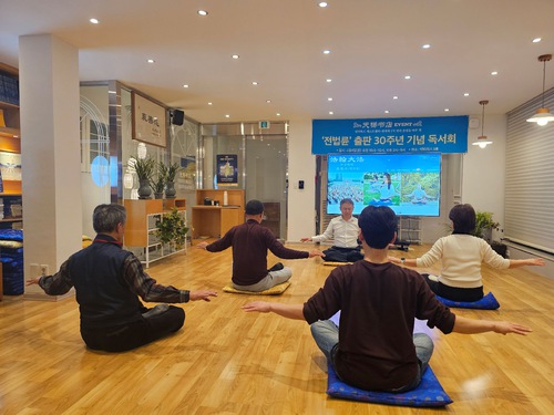 (Minghui.org) The Tianti Bookstore in Yongsan District, Seoul holds a nine-day Falun Dafa seminar every month to help people learn the spiritual practice. Each session lasts for nine consecutive days and is divided into morning and evening classes. The sessions are free of charge. People of all ages are welcome to participate.