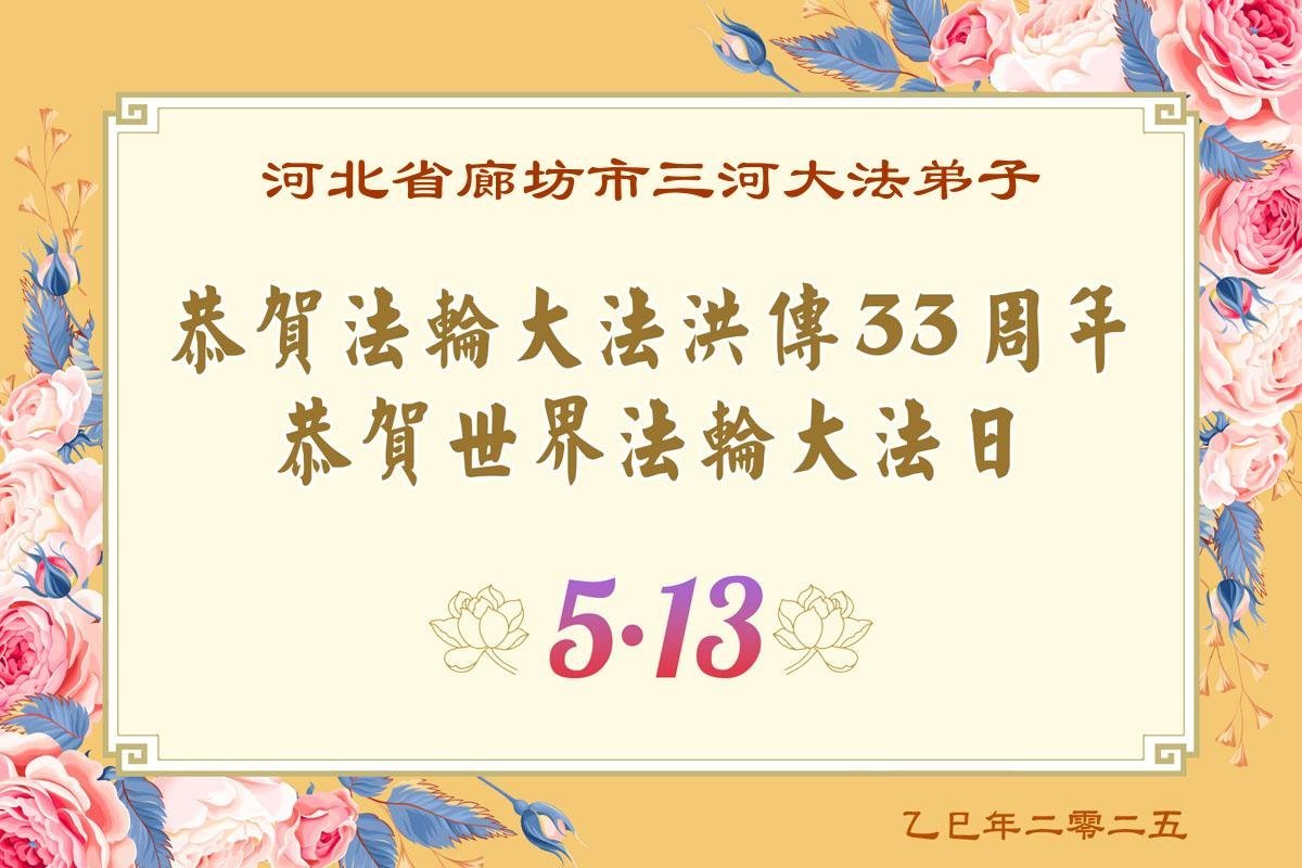 Falun Dafa Practitioners from Langfang City Wish Revered Master a Happy Birthday and Celebrate World Falun Dafa Day!