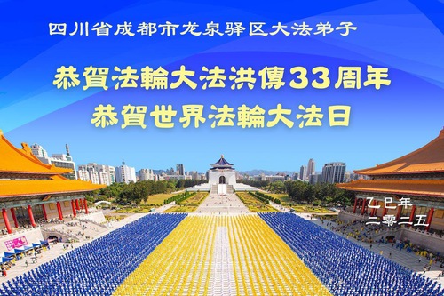 Falun Dafa Practitioners from Chengdu City Wish Revered Master a Happy Birthday and Celebrate World Falun Dafa Day!