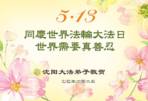 Falun Dafa Practitioners from Shenyang City Wish Revered Master a Happy Birthday and Celebrate World Falun Dafa Day!