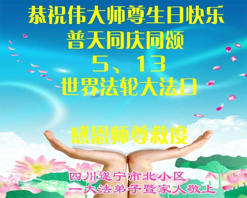 Falun Dafa Practitioners from Sichuan Province Wish Revered Master a Happy Birthday and Celebrate World Falun Dafa Day