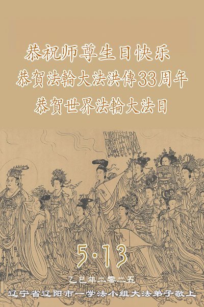 (Minghui.org) May 13, 2025, marks the 26th World Falun Dafa Day and the 33rd anniversary of the public introduction of Falun Dafa. The day is also the birthday of Master Li, the founder of Falun Dafa. Practitioners around the world are sending their heartfelt greetings to celebrate this grand occasion and honor revered Master on this special day.