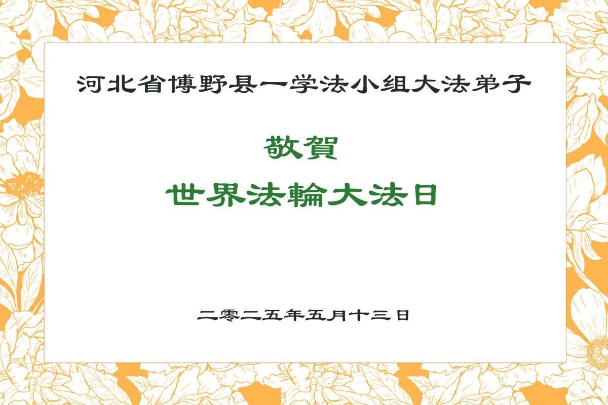 Falun Dafa Practitioners from Baoding City Wish Revered Master a Happy Birthday and Celebrate World Falun Dafa Day!