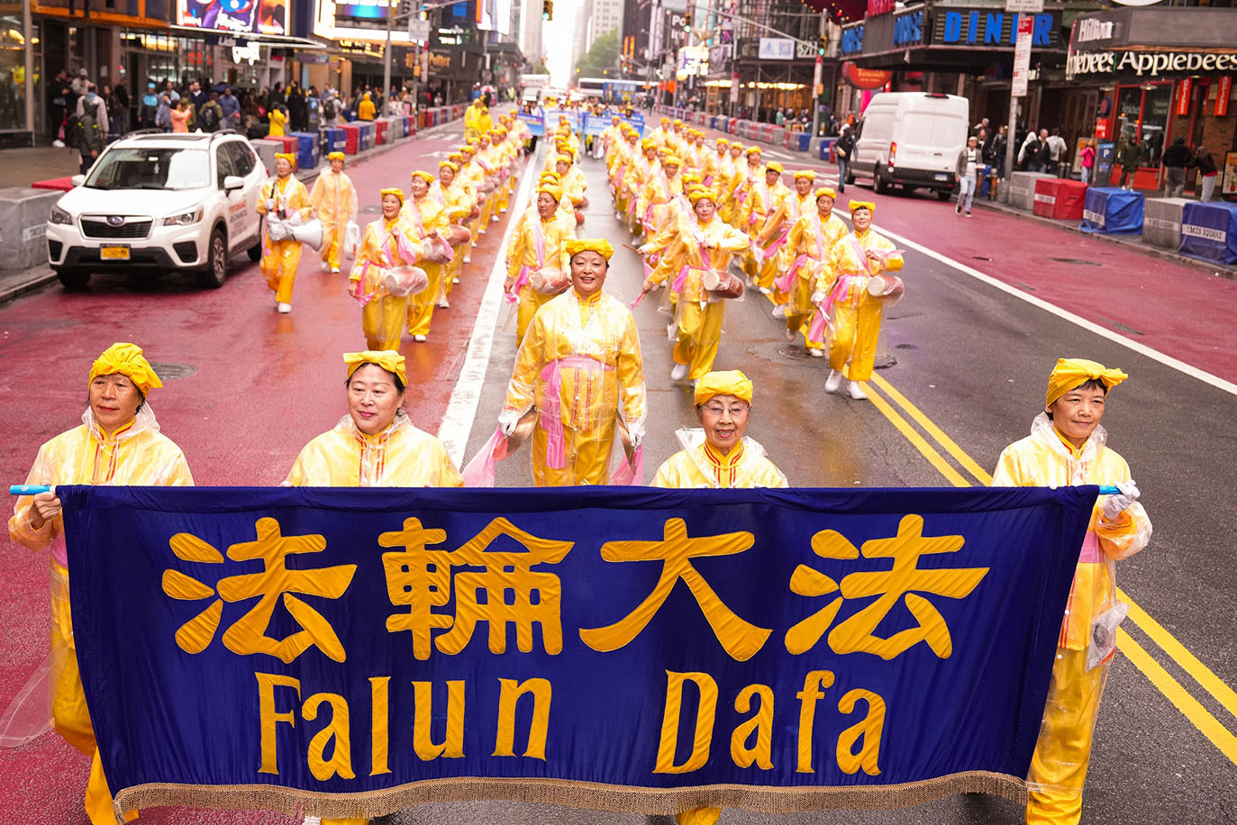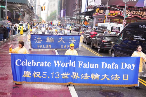 Practitioners held a grand parade in Manhattan on May 9 to celebrate the 33rd anniversary of the public introduction of Falun Dafa, the 26th World Falun Dafa Day and Master Li’s birthday.