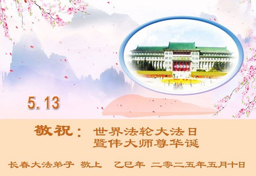 (Minghui.org) Changchun City of Jilin Province is Master Li Hongzhi’s hometown and where he began to teach Falun Dafa to the world. As May 13 World Falun Dafa Day approaches, practitioners in Changchun send their greetings to wish revered Master Li a happy birthday and to celebrate the 33rd anniversary of Falun Dafa’s public introduction. In this report, we present a selection of 18 greetings sent from Falun Dafa practitioners in Master’s hometown: