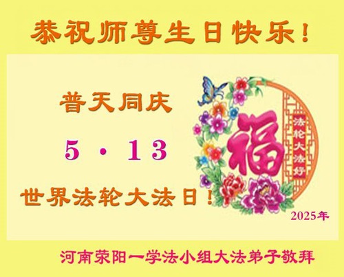(Minghui.org) May 13, 2025, marks the 26th World Falun Dafa Day and the 33rd anniversary of the public introduction of Falun Dafa. This day is also the birthday of Master Li Hongzhi, the founder of Falun Dafa. Practitioners around the world are sending their heartfelt greetings to celebrate this grand occasion and honor revered Master on this special day.