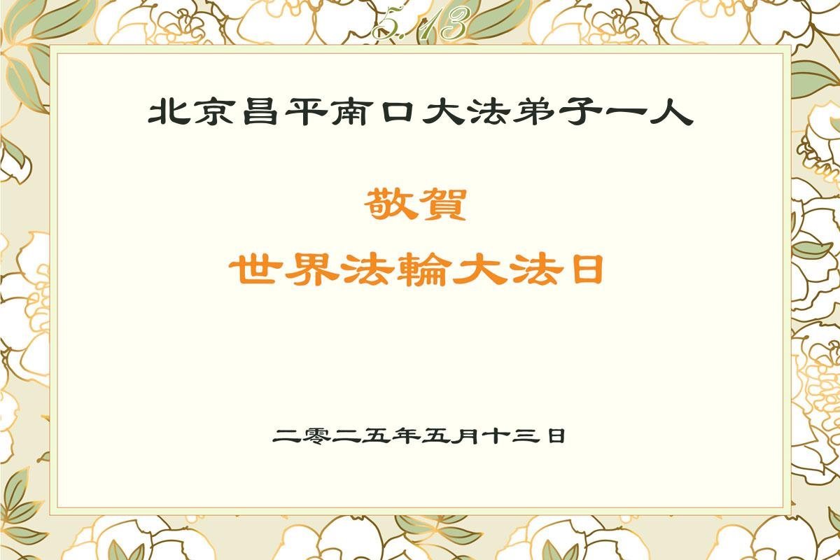 Falun Dafa Practitioners from Beijing Wish Revered Master a Happy Birthday and Celebrate World Falun Dafa Day!