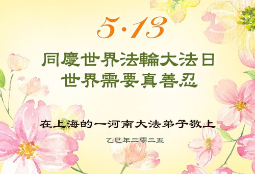 Falun Dafa Practitioners from Shanghai Wish Revered Master a Happy Birthday and Celebrate World Falun Dafa Day!