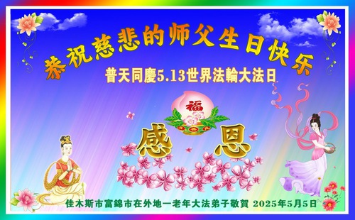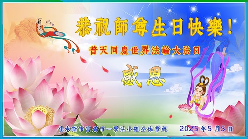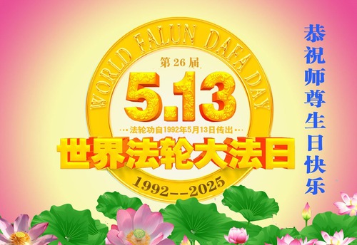 (Minghui.org) May 13, 2025, marks the 26th World Falun Dafa Day and the 33rd anniversary of the public introduction of Falun Dafa. The day is also the birthday of Master Li, the founder of Falun Dafa. Practitioners around the world are sending their heartfelt greetings to celebrate this grand occasion and honor revered Master on this special day.
