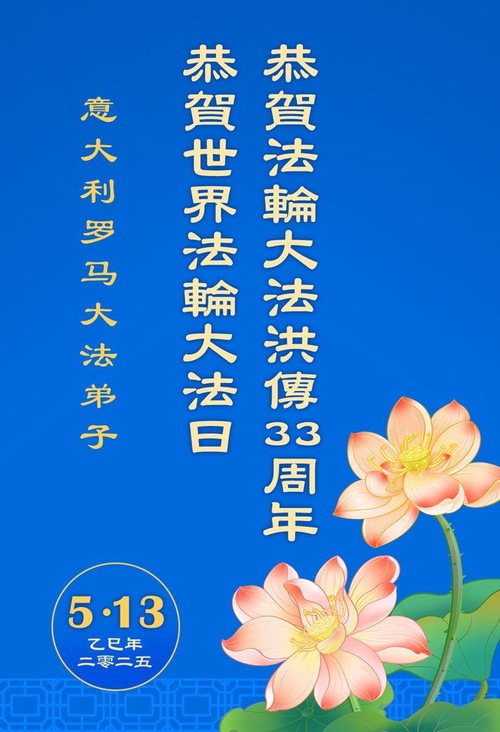 Falun Dafa Practitioners in Rome, Italy Celebrate the 33rd Anniversary of the Introduction of Falun Dafa to the World and Respectfully Wish Master a Happy Birthday!