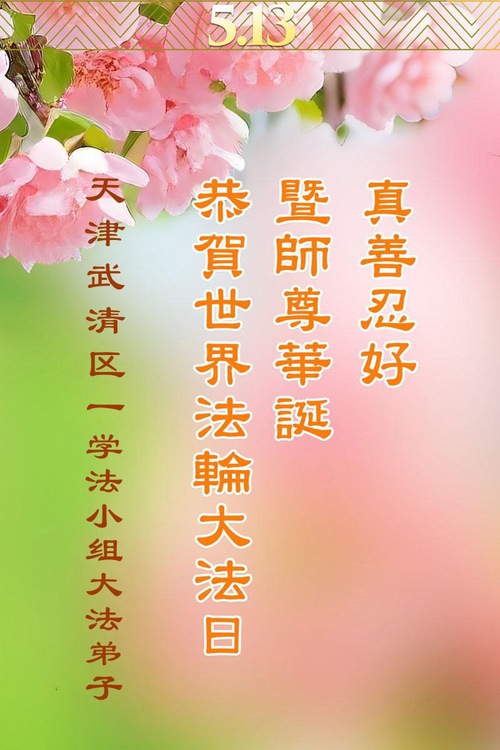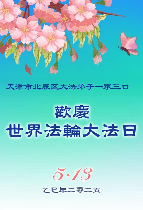 Falun Dafa Practitioners from Tianjin Wish Revered Master a Happy Birthday and Celebrate World Falun Dafa Day!