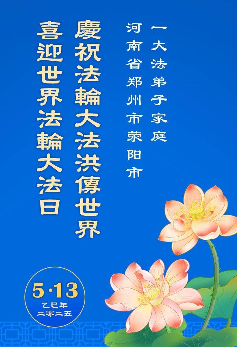 Falun Dafa Practitioners in Zhengzhou City Wish Revered Master a Happy Birthday and Celebrate World Falun Dafa Day!