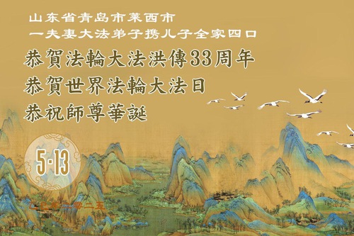 Falun Dafa Practitioners in Qingdao City Wish Revered Master a Happy Birthday and Celebrate World Falun Dafa Day!