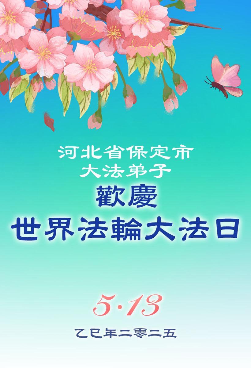 Falun Dafa Practitioners in Baoding City Wish Revered Master a Happy Birthday and Celebrate World Falun Dafa Day!