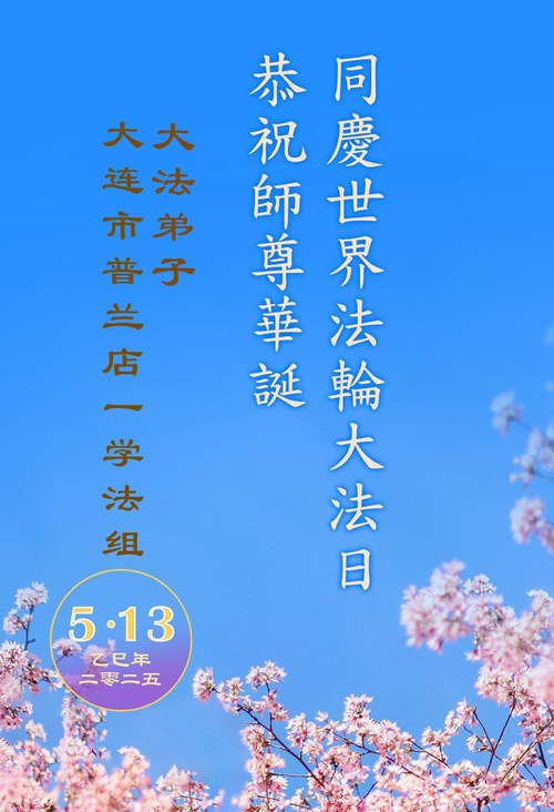 Falun Dafa Practitioners in Dalian City Wish Revered Master a Happy Birthday and Celebrate World Falun Dafa Day!