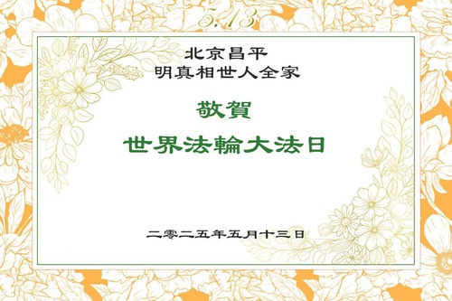 (Minghui.org) May 13, 2025, marks the 26th World Falun Dafa Day and the 33rd anniversary of the public introduction of Falun Dafa. The day is also the birthday of Master Li Hongzhi, the founder of Falun Dafa. Practitioners around the world send their heartfelt greetings to celebrate this grand occasion and honor revered Master on this special day.