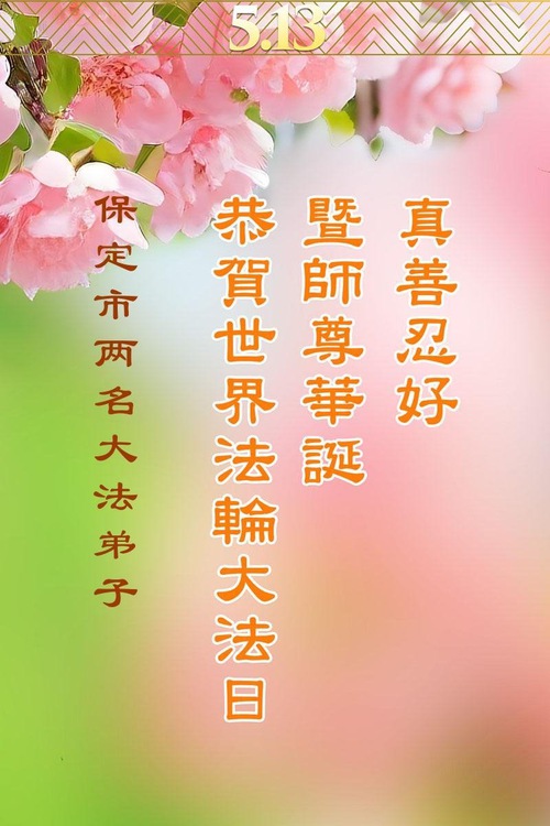 In this report, we present a selection of the 22 greetings sent from Falun Dafa practitioners in Baoding City, Hebei Province, China.