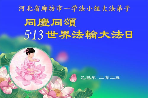 Falun Dafa Practitioners from Langfang City Wish Revered Master a Happy Birthday and Celebrate World Falun Dafa Day!