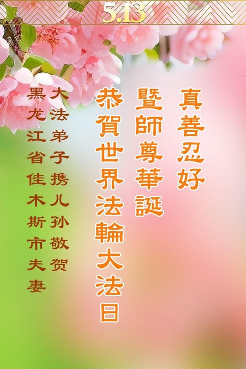 (Minghui.org) May 13, 2025, marks the 26th World Falun Dafa Day and the 33rd anniversary of the public introduction of Falun Dafa. It is also the birthday of Master Li Hongzhi, the founder of Falun Dafa. Practitioners around the world are sending their heartfelt greetings to celebrate this grand occasion and honor revered Master on this special day.