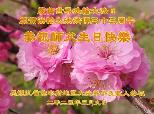 Falun Dafa Practitioners from Jiamusi City Wish Revered Master a Happy Birthday and Celebrate World Falun Dafa Day!