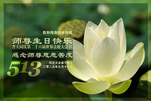 (Minghui.org) May 13, 2025, marks the 26th World Falun Dafa Day and the 33rd anniversary of the public introduction of Falun Dafa. It is also the birthday of Master Li Hongzhi, the founder of Falun Dafa. Practitioners around the world are sending their heartfelt greetings to celebrate this grand occasion and honor revered Master on this special day.