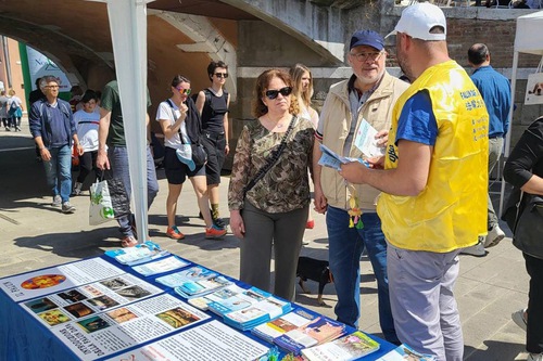 (Minghui.org) May 13, 2025 was the 33rd anniversary of the public introduction of Falun Dafa and the birthday of Master Li, the founder of the practice. Practitioners in Italy held activities in various parts of the country during May to celebrate the occasion and to express their infinite gratitude to Master Li.