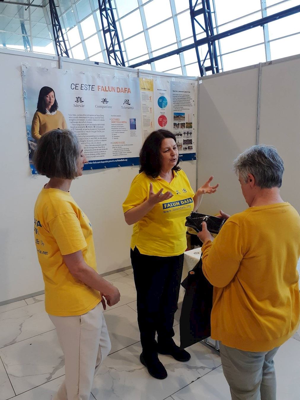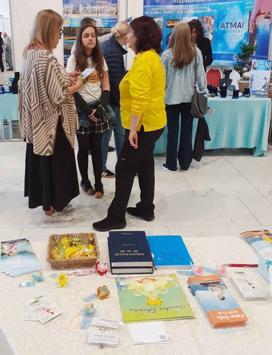 (Minghui.org) Falun Dafa practitioners presented their spiritual practice at the Ezoteric Fest held in Timisoara from May 9 to 11 by demonstrating the exercises. Two main works of Falun Dafa, Falun Gong and Zhuan Falun, written by Mr. Li Hongzhi, were on display for visitors to browse and purchase.