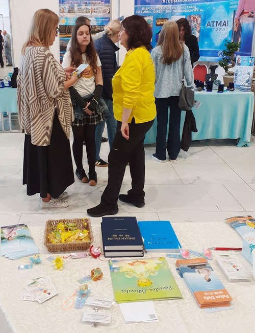 Falun Dafa booth at Ezoteric Fest, Timisoara, Romania, from May 9 to 11, 2025.