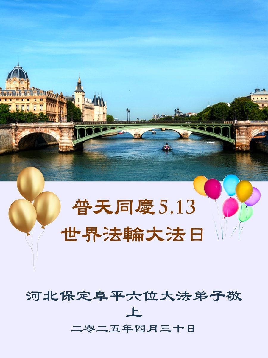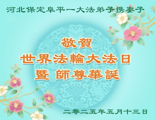 (Minghui.org) In this report, we present a selection of the 18 greetings sent from Falun Dafa practitioners in Baoding City, Hebei Province, China, to celebrate the special occasion of May 13, 2025: the 26th World Falun Dafa Day and the birthday of Master Li Hongzhi.