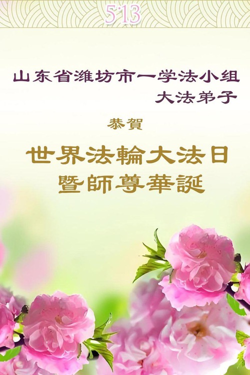 (Minghui.org) In this report, we present a selection of the 19 greetings sent from Falun Dafa practitioners in Weifang City, Shandong Province, China, to celebrate the special occasion of May 13, 2025: the 26th World Falun Dafa Day and the birthday of Master Li Hongzhi.