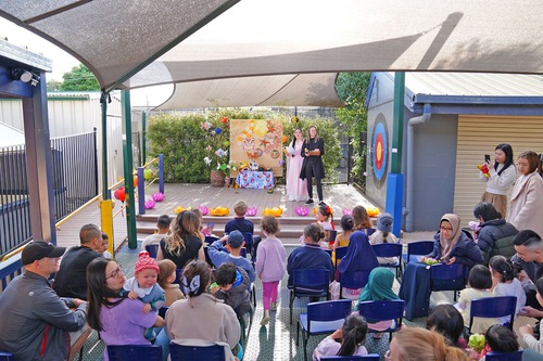 Ms. Nguyen, a kindergarten teacher, planned and organized a Mid-Autumn Festival celebration at her kindergarten the day before, on September 19. She said the program included waist drum performances and Vietnamese folk dances by Falun Dafa practitioners, as well as exercise demonstrations and storytelling. The performance introduced Falun Dafa and the principles of Truthfulness, Compassion, and Forbearance to kindergarten staff, families, and children. The costumes for the Vietnamese folk dance are traditional, authentic Vietnamese attire and are very elegant.