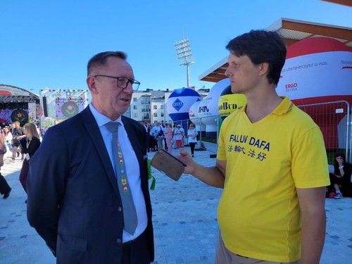 Krzysztof Jażdżyk, mayor of Skärniewice, thanked Falun Dafa practitioners for participating in the parade and said, “This is the only parade of this scale in Poland. Thank you for your participation.”