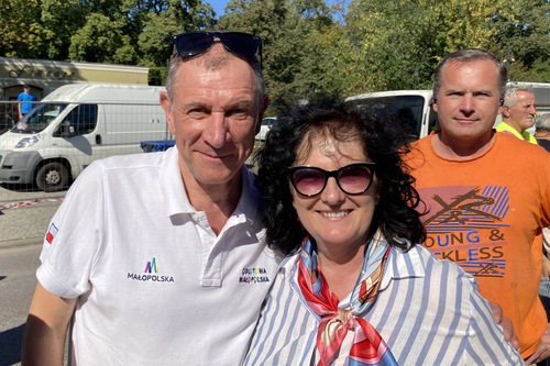 Hot air balloon pilot Jacek Lenatovic (first on left) and his colleague Beata Janiszewska