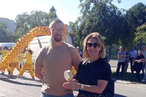 Paweł said, “I believe Falun Dafa’s values of Truthfulness, Compassion, and Forbearance are essential. We should study them diligently and practice them in our daily lives.” The couple thanked practitioners for participating and said, “I wish you good health and hope you persevere.”