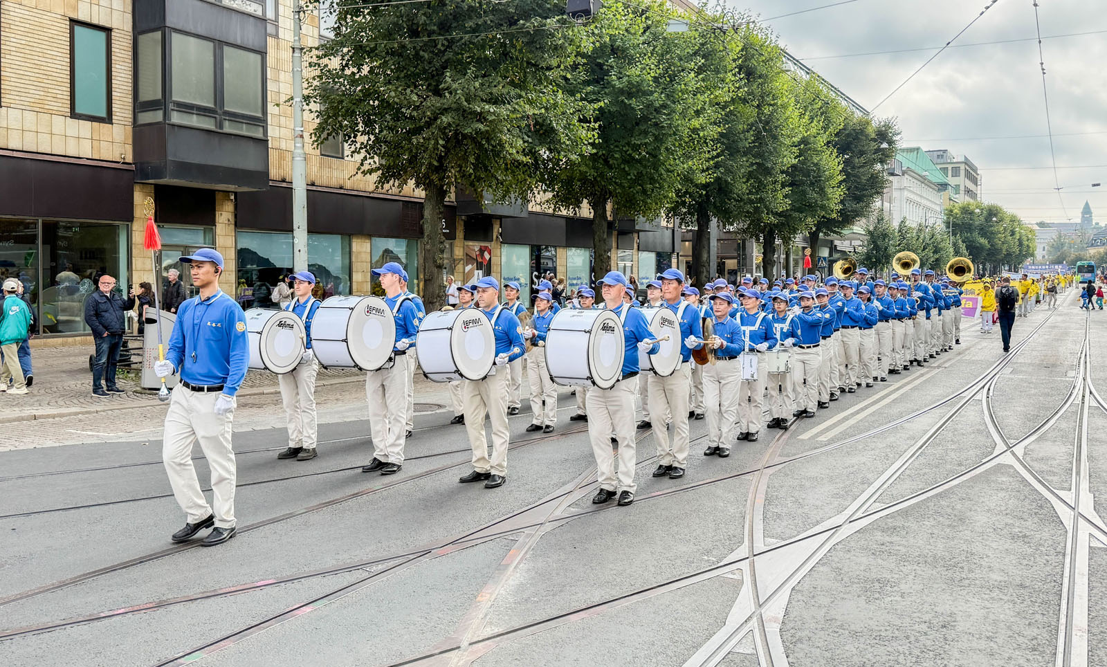 The practitioners held a parade as well as several performances on Gustav Adolfs torg for the celebration. The Tian Guo Marching Band and the waist drum team gave spirited performances. Practitioners also performed the lion dance. Some practitioners were dressed in traditional Chinese ethnic clothes, while others demonstrated the Falun Dafa exercises. Many stopped to watch and said they were impressed by the performances.