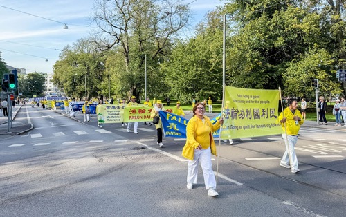 Lotta and Kristel expressed firm belief and hope in Falun Dafa. “It’s a wonderful way of cultivation, and I hope more people understand and join it,” said Kristel. They both walked with the parade from the beginning to the end.