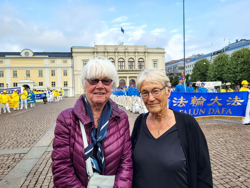 Lotta, 80, and Kristel, 76, both live in Gothenburg. Kristel said she’s practiced Falun Dafa for two years. She’s read Falun Dafa’s main book Zhuan Falun twice and said the practice has kept her healthy and that the book is worth reading again and again.