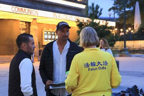 People leaving the concert hall on the west side of Götaplatsen Square wanted to learn more about Falun Dafa.