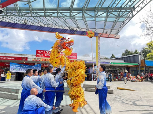 (Minghui.org) Practitioners held an event on September 27, 2025 at Otara Market in Auckland, New Zealand. They did the Falun Dafa exercises, and gave waist drum and dragon dance performances to celebrate the more than 450 million Chinese people who have quit the Chinese Communist Party (CCP) organizations. Many people agreed with Falun Dafa’s principles of Truthfulness-Compassion-Forbearance, and called on people to oppose the CCP’s suppression of the practice.