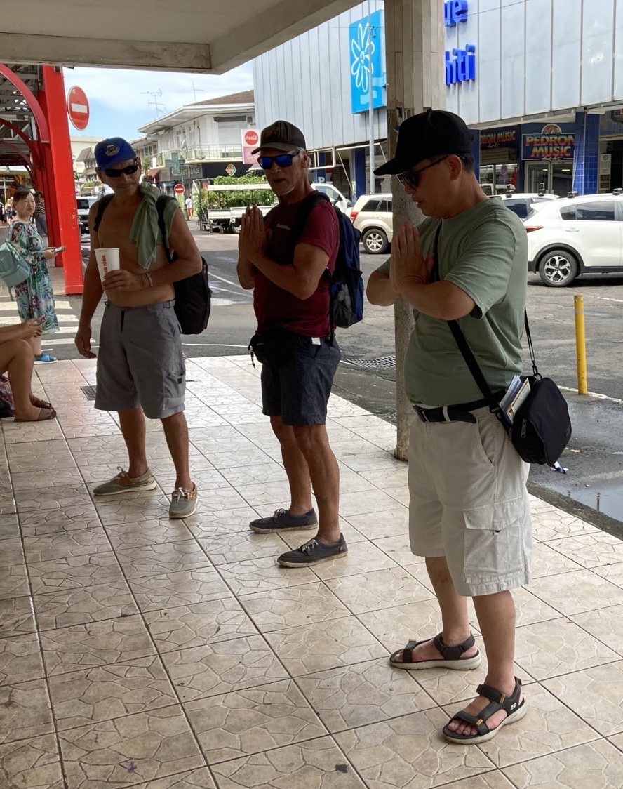 The first day they arrived, practitioners distributed flyers in the largest local market. Vahine and her husband accepted the materials and talked with practitioners. Vahine said that she seldom visited the market, so she felt it wasn’t a coincidence that she met practitioners there. She said she had a hot temper and wished to let it go. When she read the three words Truthfulness-Compassion-Forbearance on the flyer, she felt practicing Falun Dafa would be helpful, and she and her husband learned the exercises that evening.