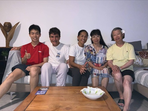 Vahine (middle) and her husband (second from left) took a group photo with practitioners after they learned the exercises.