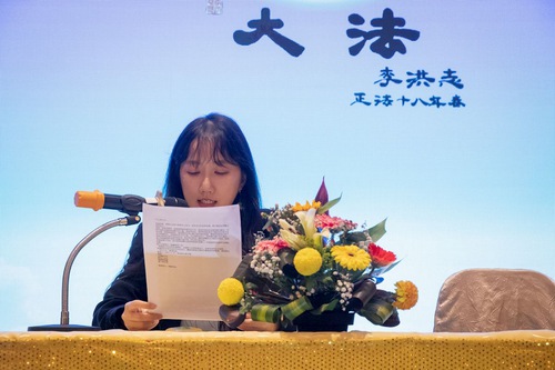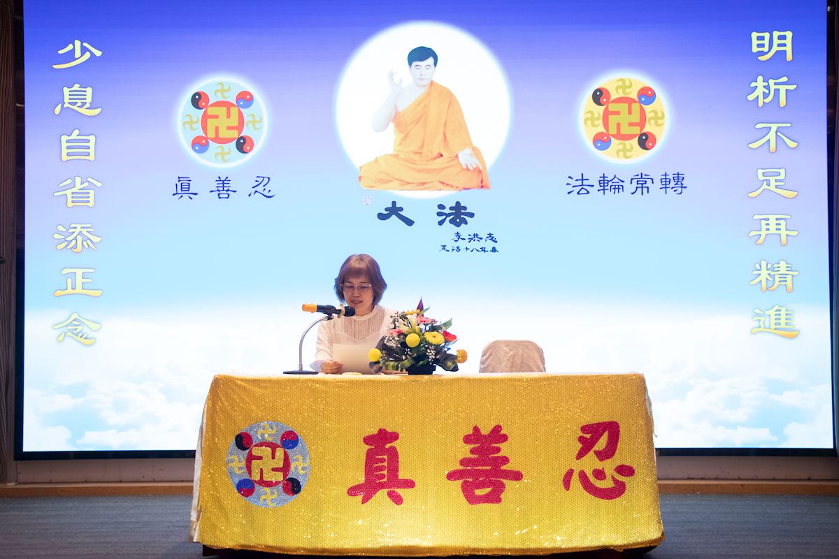 Twenty-one practitioners gave talks about their experiences in following Falun Dafa’s principles of Truthfulness-Compassion-Forbearance and looking within in at home, at work, and while participating in truth-clarification projects. They said they believed in Master and the Fa, overcame difficulties with righteous thoughts, and formed one body with other practitioners to assist Master in saving sentient beings.