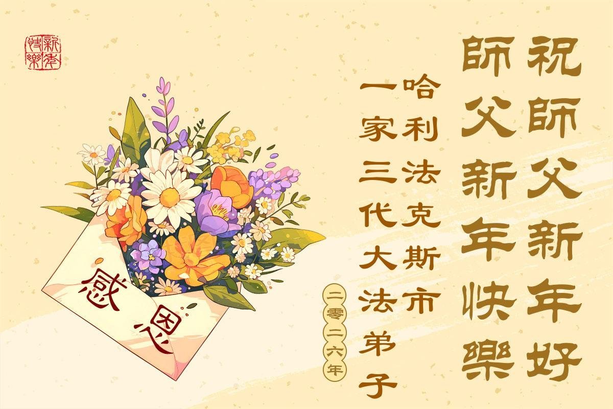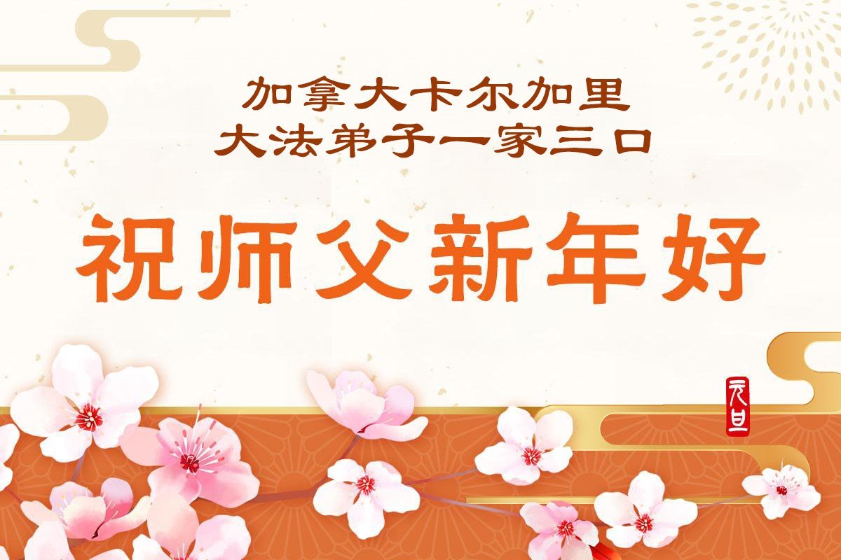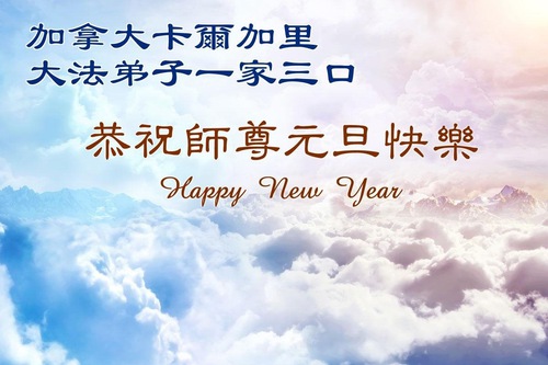 A married Chinese couple who are practitioners and their family in Regina wish revered Master a happy New Year!